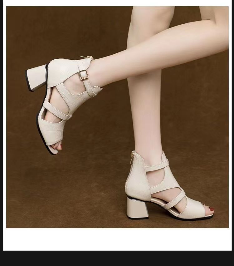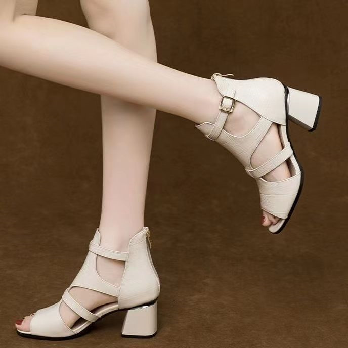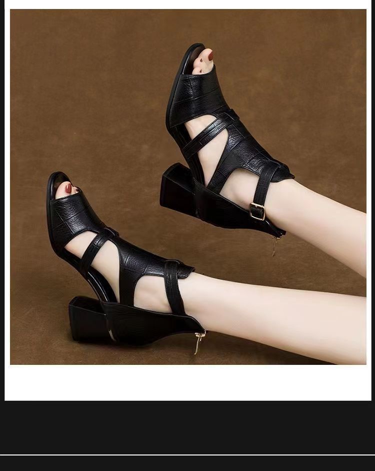 Toc pătrat Deget deschis Cauciuc Toc înalt Sandale cu curele la gleznă Catarame Sandale Pompe Pantofi sport casual pentru femei